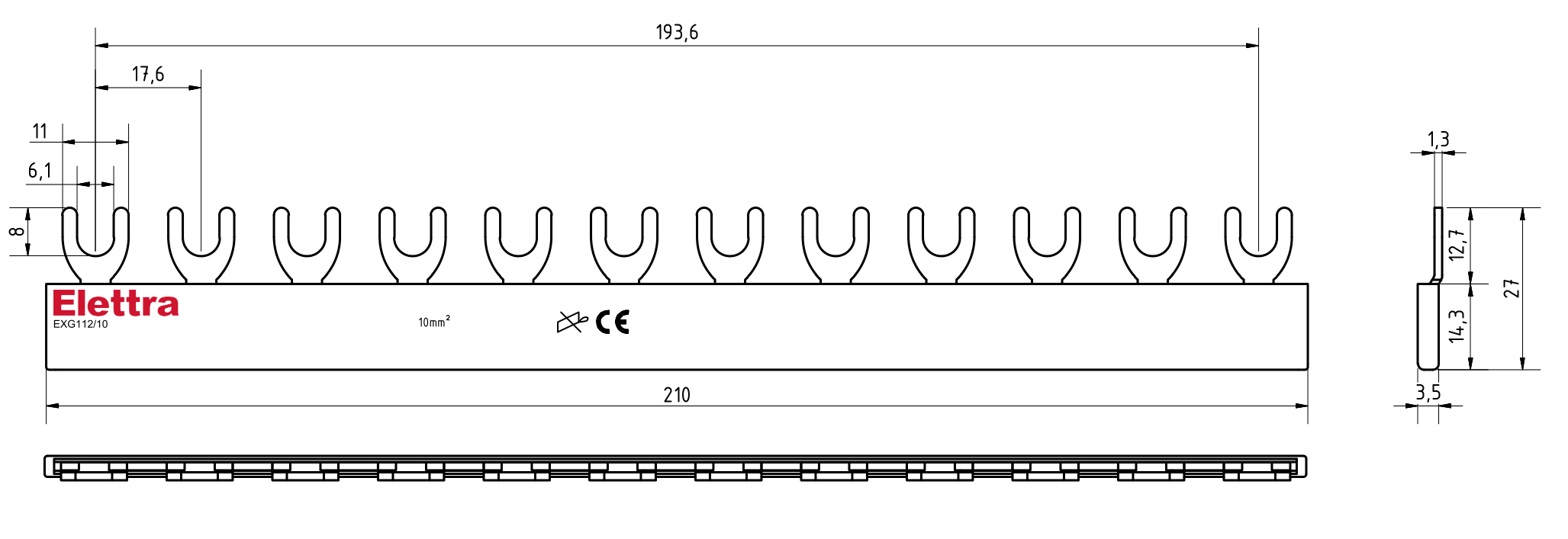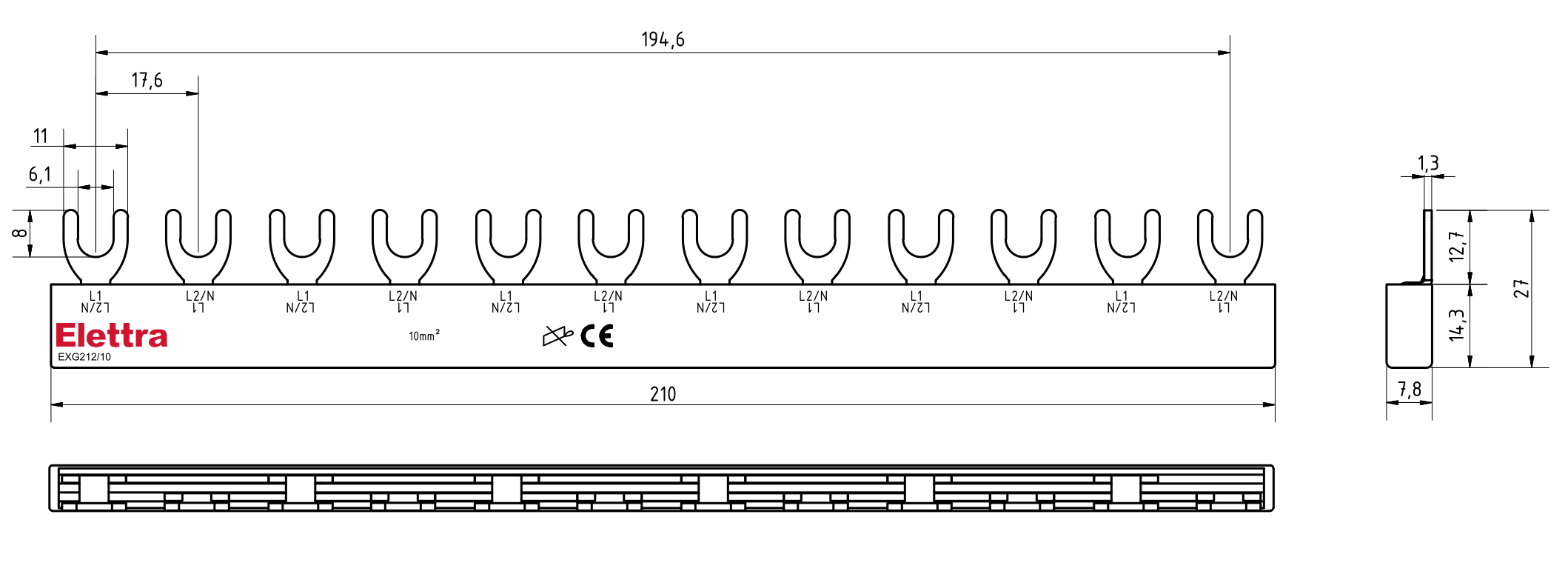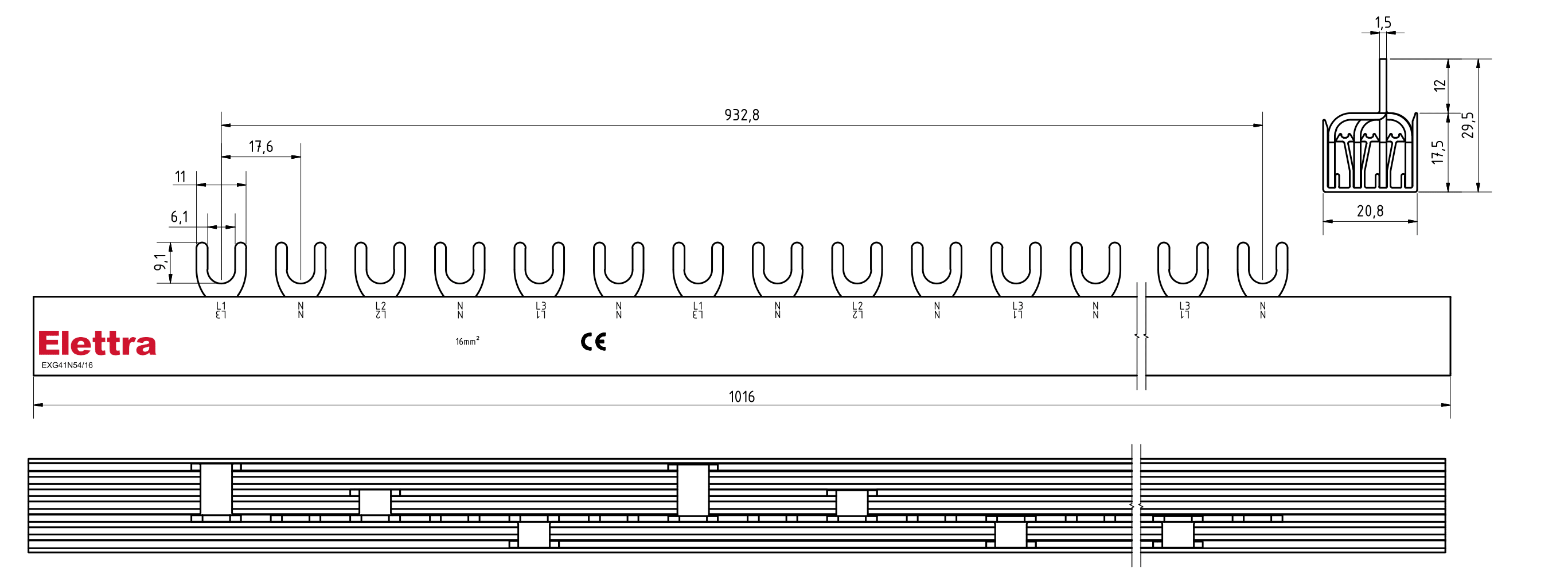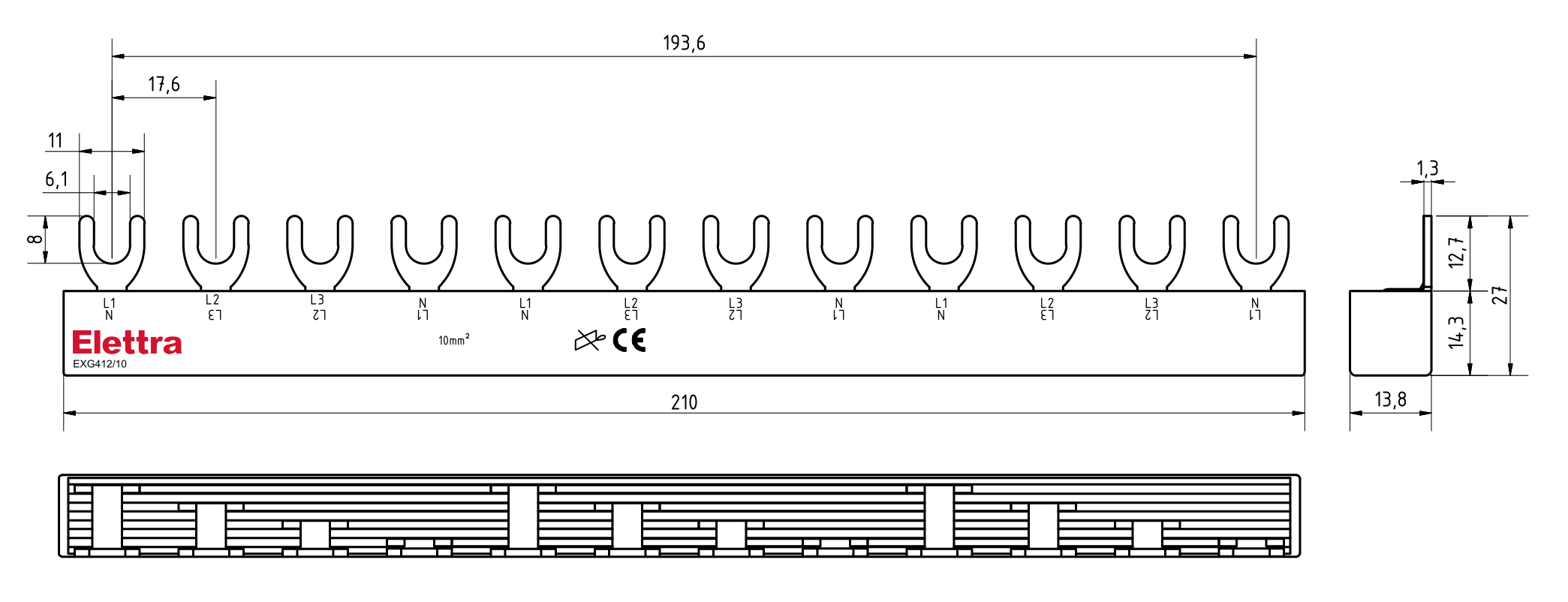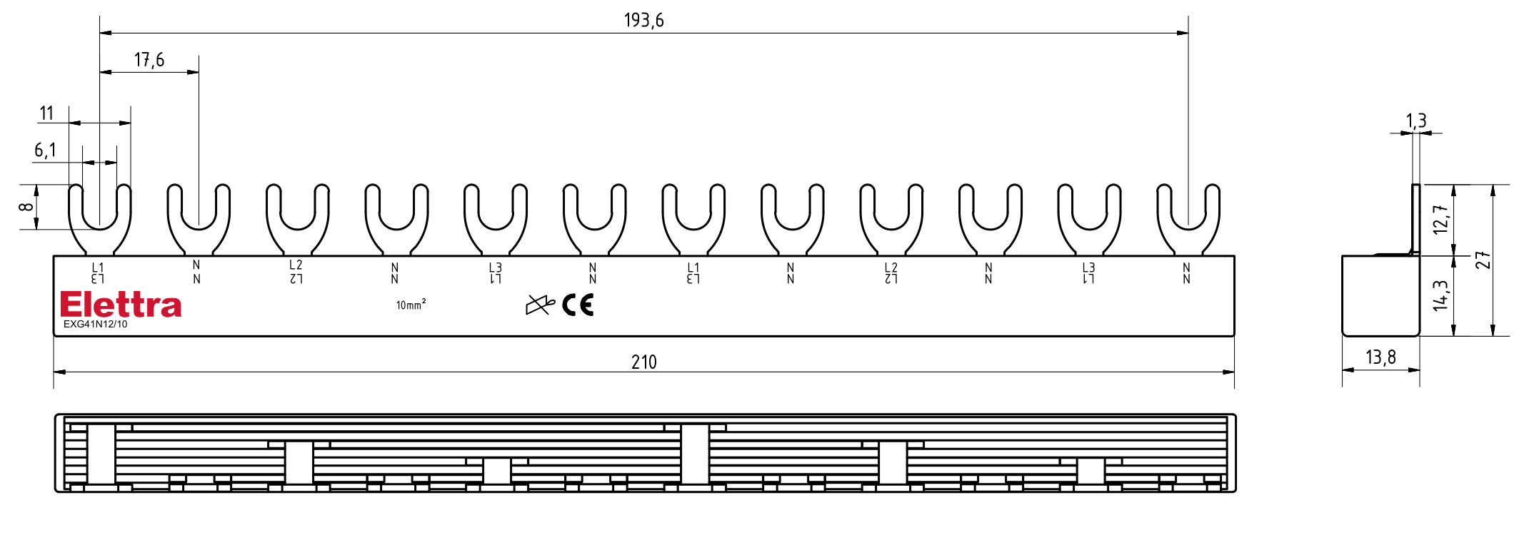 BARRA ELFA NEXT 1P 12FORK 10MM2