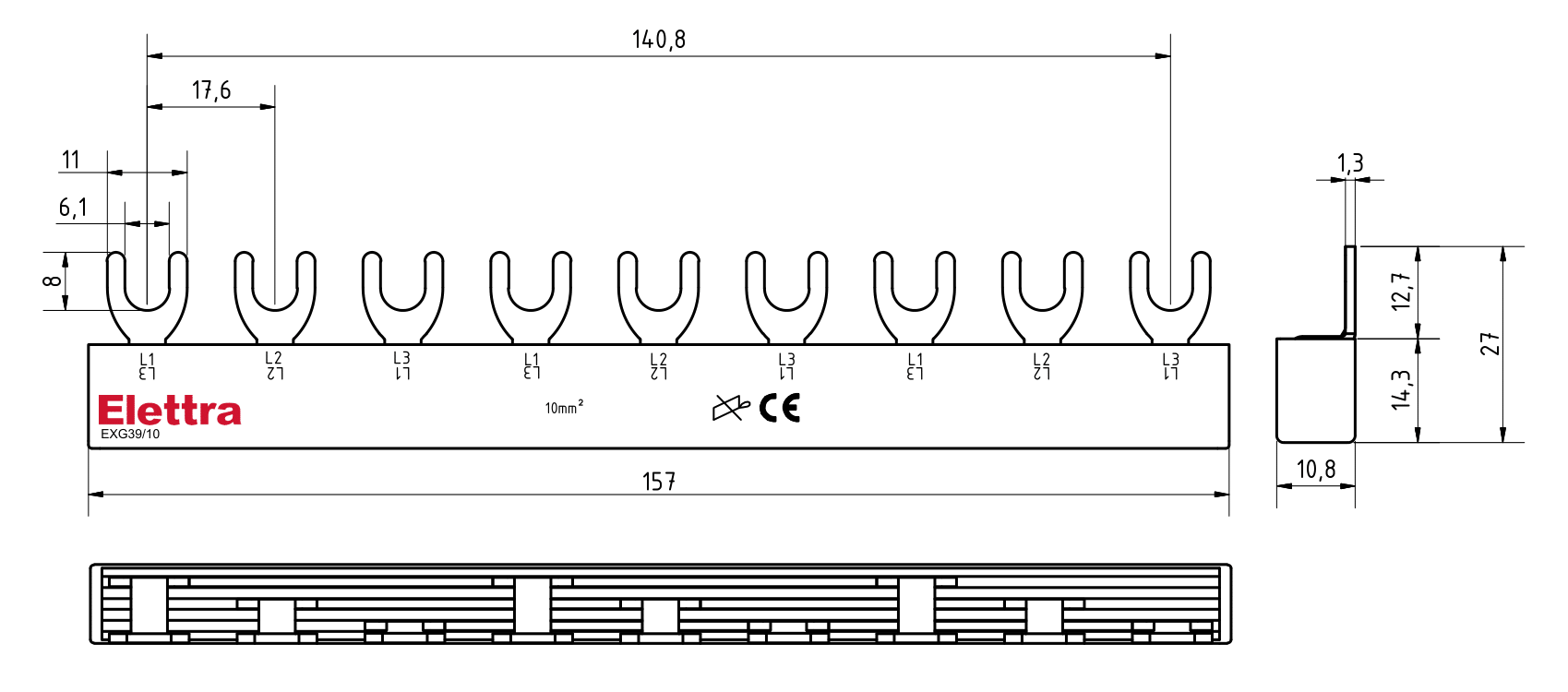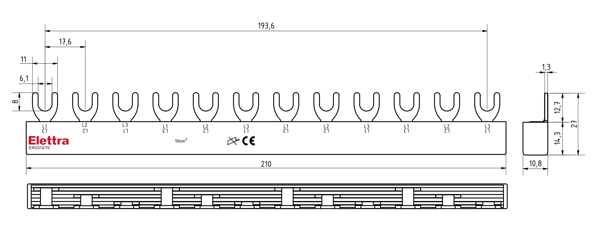 BARRA ELFA NEXT 3P 6FORK 10MM2