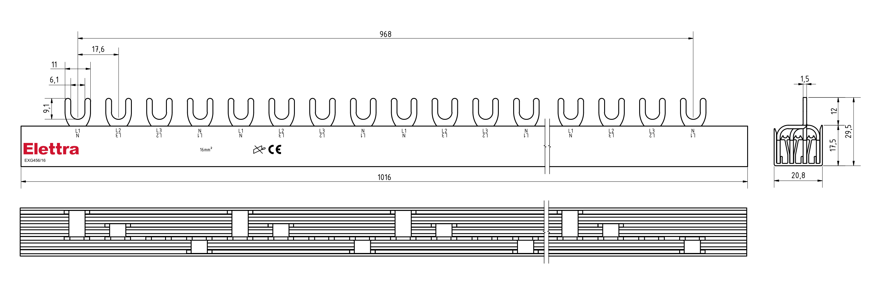 BARRA ELFA NEXT 3P+AUX 6FORK 10MM2