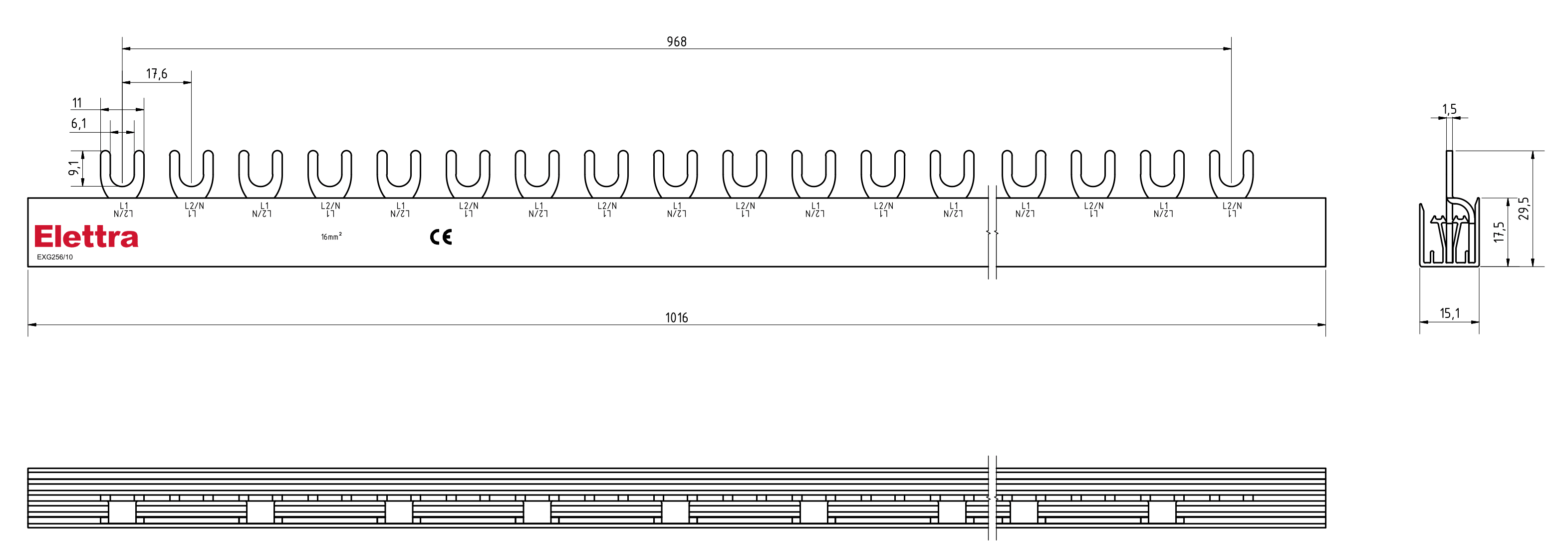 BARRA ELFA NEXT 1P 6FORK 10MM2