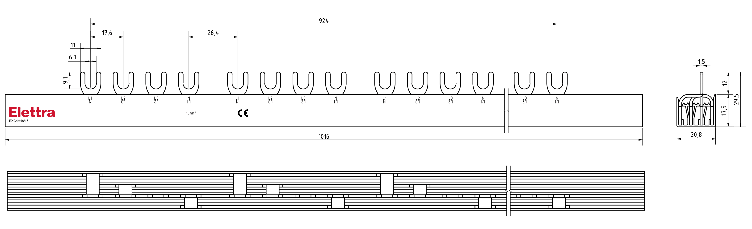 BARRA ELFA NEXT 4P(1P+N) 12FORK 10MM2