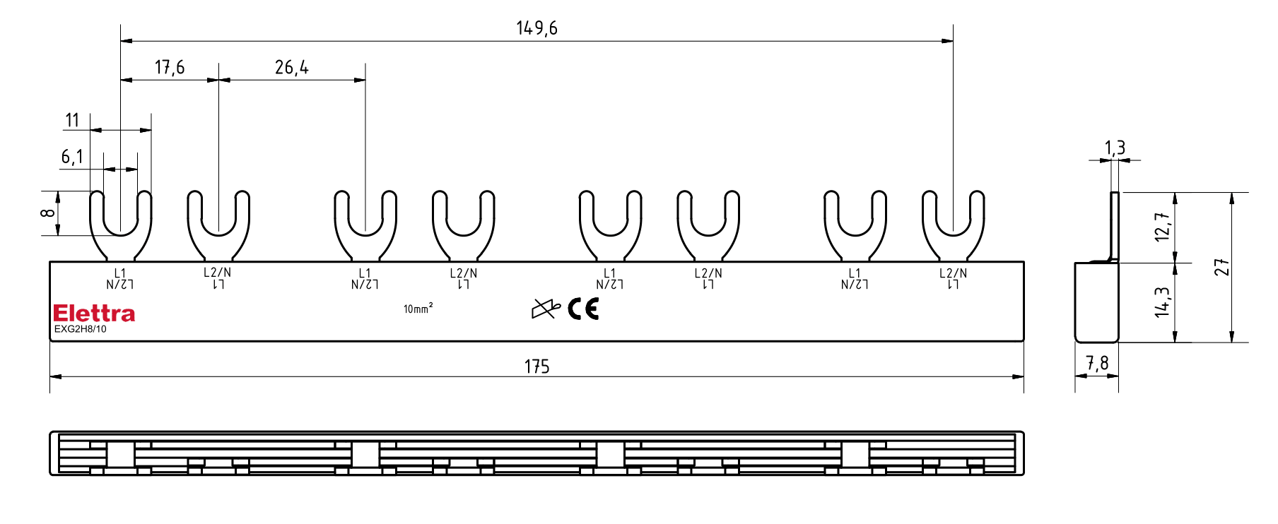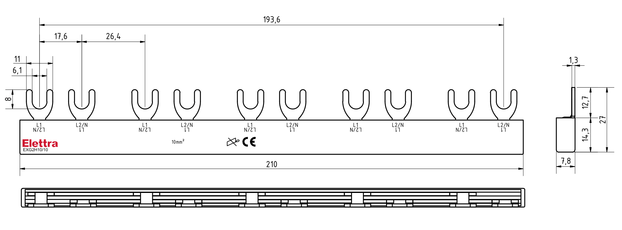 BARRA ELFA NEXT 2P+AUX 10FORK 10MM2